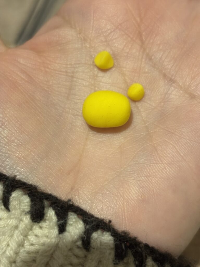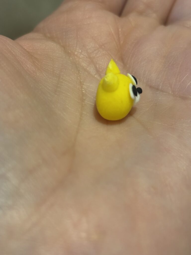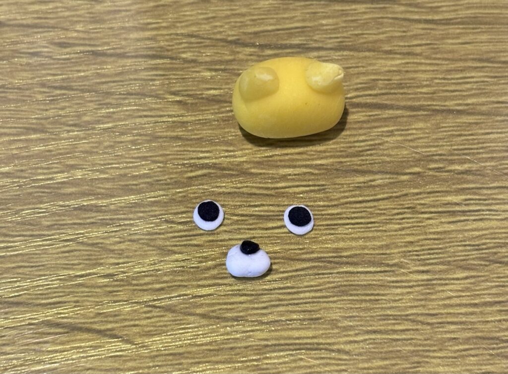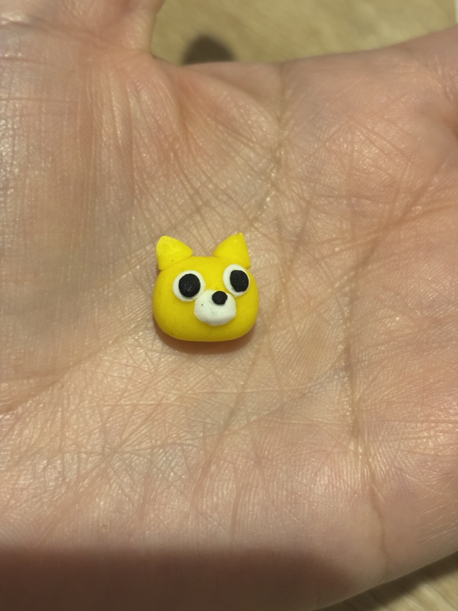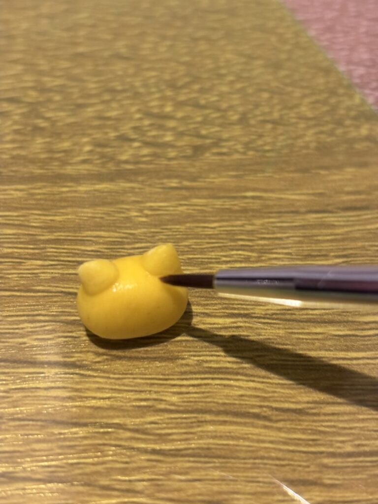 昨日は顔を丸くこねて、端を耳に見立てて尖らせたんですが、今日は別パーツで作って、あとで組み立ててみました。