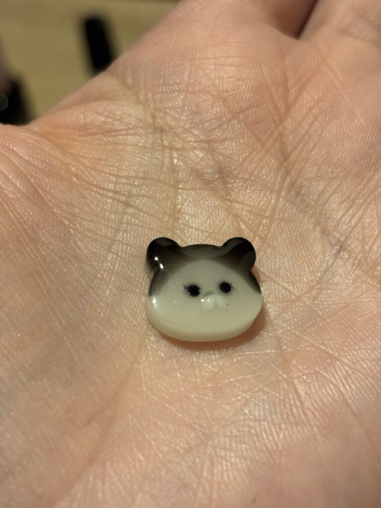 今回も目を封入しつつ黒レジンを流したら、目が消えてしまいました(笑)