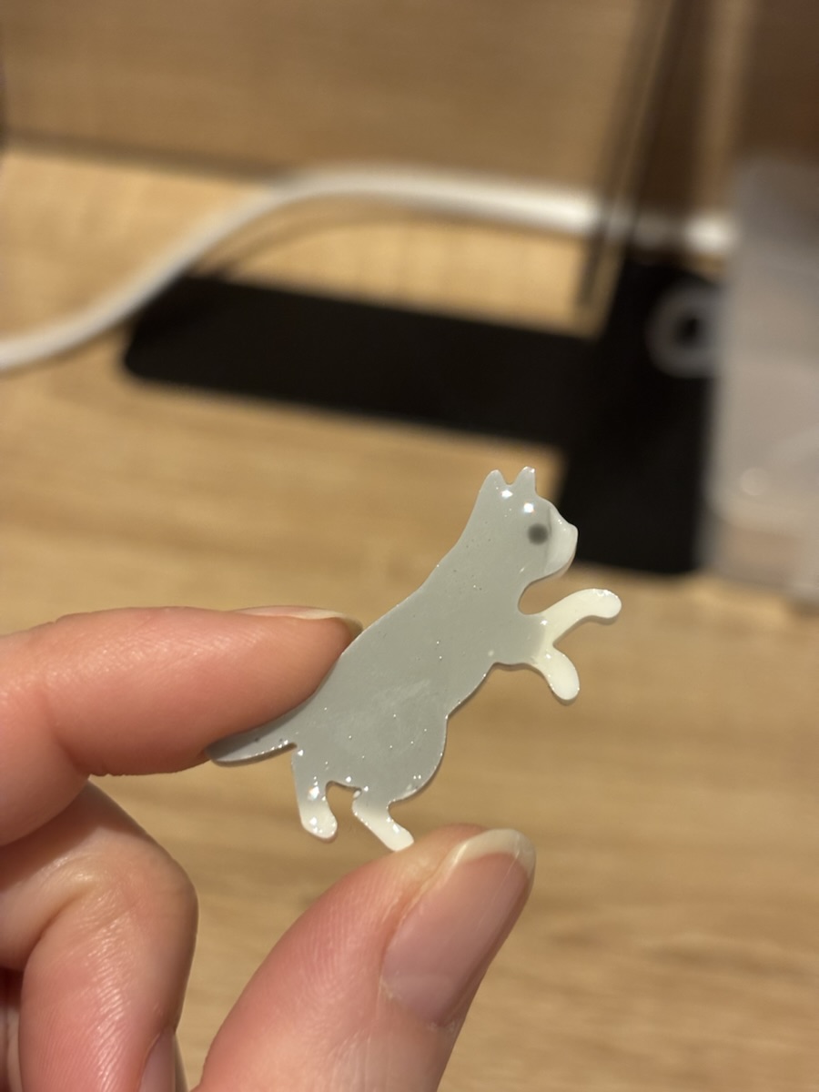 先に手足の先の白いレジンを傾けて硬化させて、グレーを流して硬化させて、最後に白いレジンで全体を固めるべきでした!!