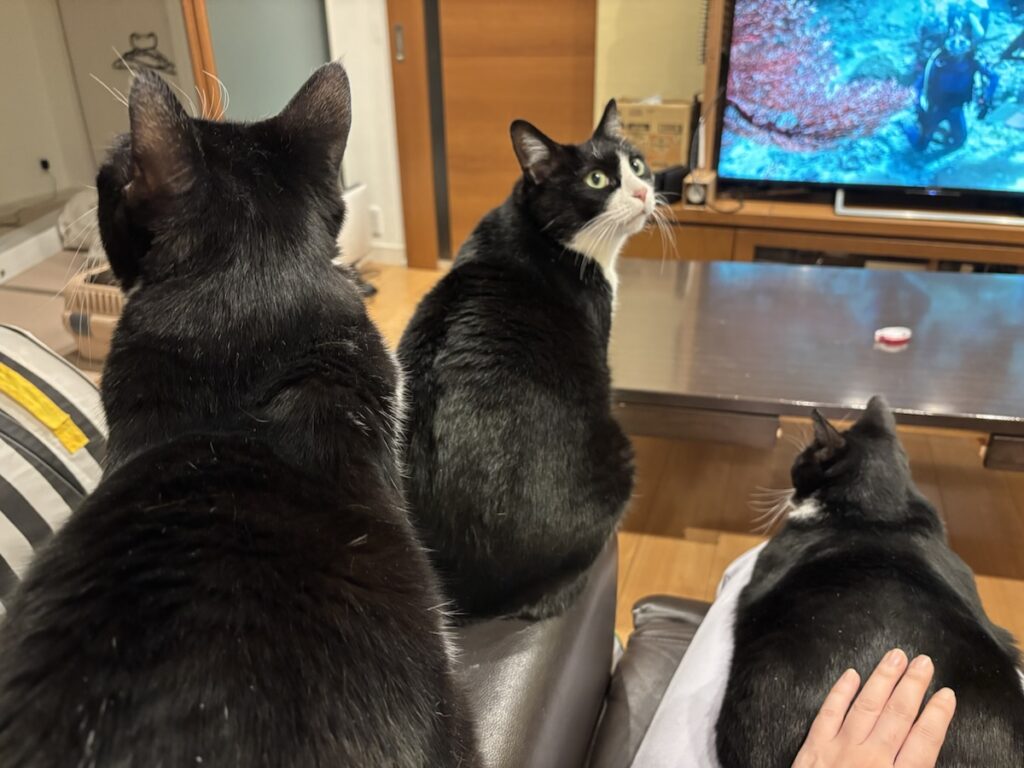 しかも猫はひざにいないし!
