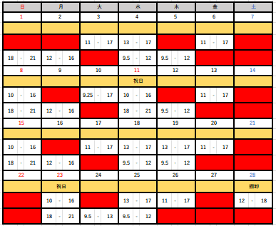 人が足りていれば削ってくれるし、この時間までムリ?という相談にも、この表をつくっておけば、すぐに答えることもできます。