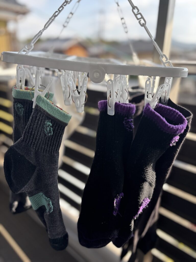 靴下もバラバラに干してるから、片付けの時に「相方がいない!」ってなる。