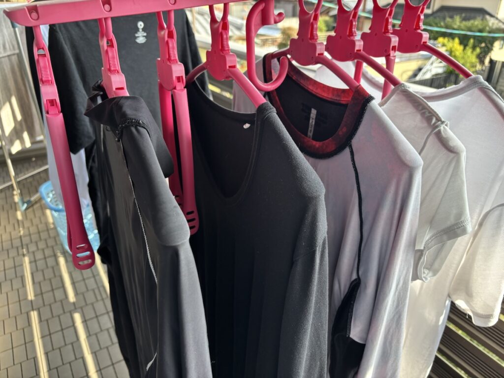 でも、どんなハンガーで干すにしても、肩の位置を意識して干すと、乾いたときにキレイ。